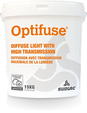 Optifuse needs to be diluted with water before spraying it onto the greenhouse. Depending on the type of greenhouse and climate, more or less water and buckets should be used to achieve the best result. Optifuse needs to be applied by machine to get an even layer for optimum diffusion. Optifuse can only be used on glasshouses where a brushing machine is available for cleaning.